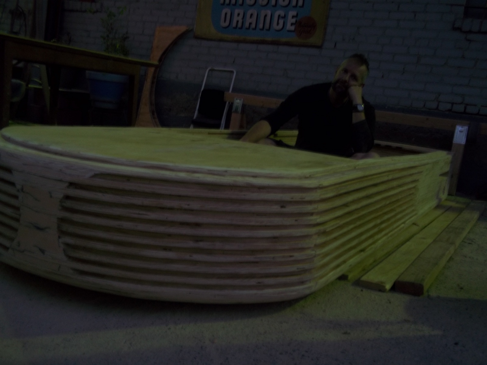 Today I went crazy with a Plane and hacked about 3 inches of the side of the Landspeeder in my pursuit for the ultimate curve! We also had a special guest in Pro Villain who turned up to help us make 14 ‘Flats’ (set walls) which are gonna end up being the Mos Eisley cantina… so all in all a productive day.