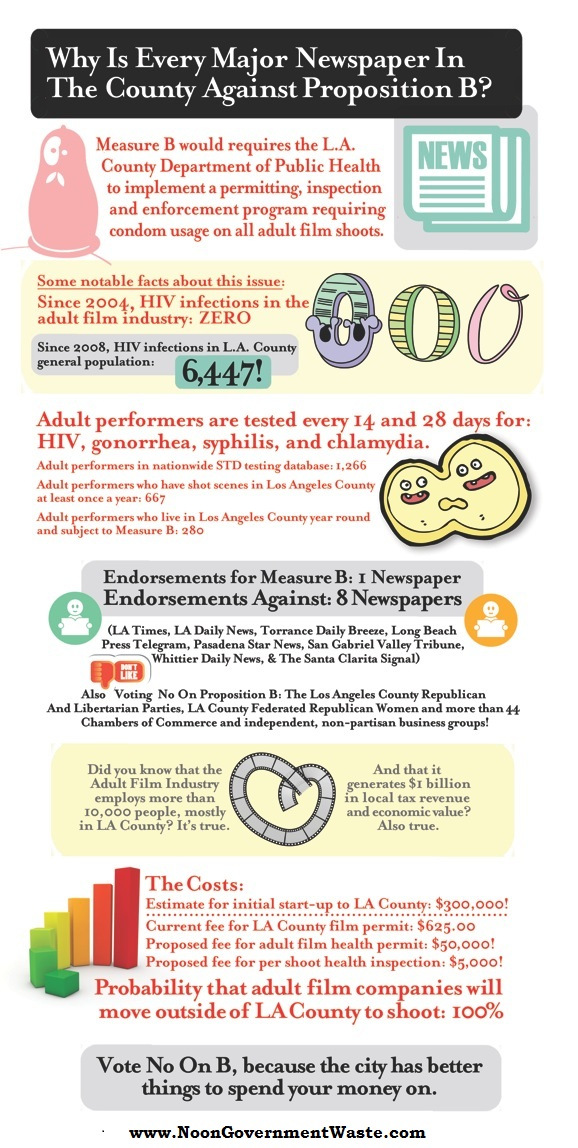 Here’s an infographic we would love for you to share with friends and anyone that you know will be voting in L.A. County on Nov 6. Simply put, these are the facts about Measure B, L.A.’s Condom Ballot Measure.